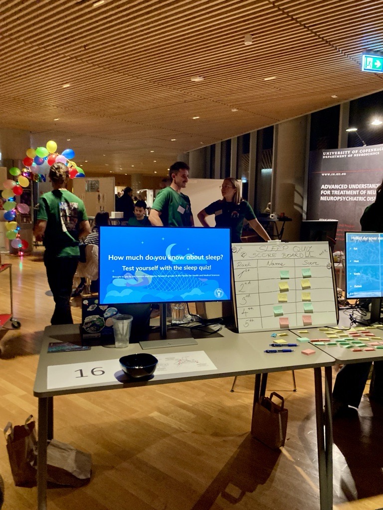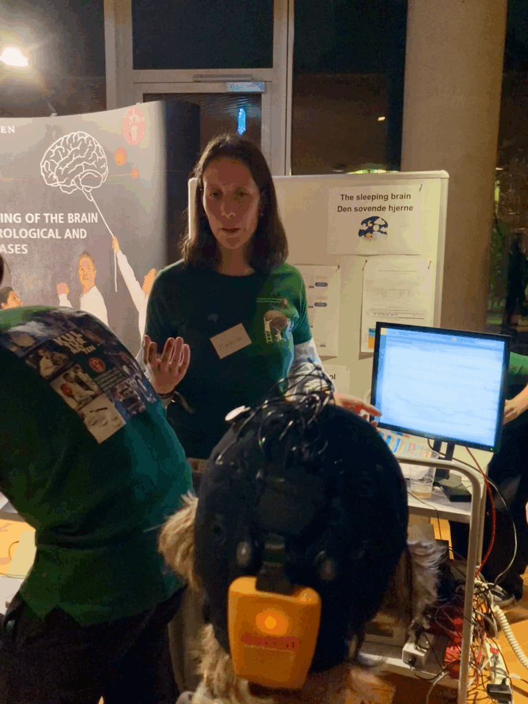 The Kjaerby Lab teamed up with members of the Kornum Lab for Copenhagen’s annual Culture Night. We spent the evening talking with visitors about sleep and our sleep research in mice. Those interested could test their knowledge in our interactive sleep quiz or try on EEG caps to see their own brain activity in real time. We had a fantastic evening and loved seeing the public’s interest and excitement about our research!